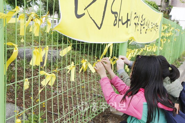 ▲ 세월호 침몰사고로 온 국민이 슬픔에 잠겨 있는 가운데 실종자들의 무사생환을 기원하는 노란 리본이 우리 지역에도 곳곳에 걸리고 있다. 사진은 홍성초등학교 어린이들이 학교 담장에 노란 리본을 걸고 있는 모습. 저작권자 © 홍주일보 무단전재 및 재배포 금지 김혜동 기자 다른기사 보기 페이스북 카카오톡 URL복사 기사공유하기