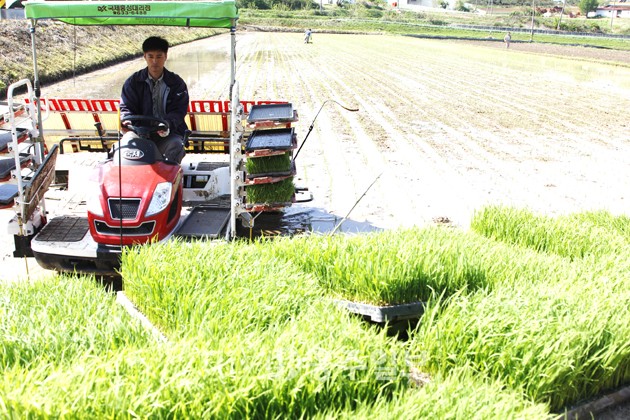 ▲ 지난달 30일 금마면 배양마을 김종열(67) 씨 농가에서 올해 관내 첫 모내기가 실시됐다. 김 씨는 “매년 추석 햅쌀을 수확하고 있어 이맘때쯤 모내기를 하고 있다”며 “올해는 추석이 일러 모내기 시기도 예년보다 조금 이른 편”이라고 말했다. 저작권자 © 홍주일보 무단전재 및 재배포 금지 김혜동 기자 다른기사 보기 페이스북 카카오톡 URL복사 기사공유하기