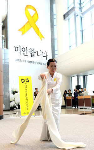 세월호 침몰사고 희생자를 추모하기 위한 특별한 공연이 펼쳐져 잔잔한 감동을 주고 있다. 홍성군립무용단은 지난 12일부터 충남도청사 합동분향소 앞에서 도살풀이춤 등의 추모공연을 선보이고 있다. 이번 추모공연은 지난 12일 첫 공연을 시작으로 오는 26일까지 매주 월요일 오후 5시경부터 도청사 합동분향소에서 지속적으로 개최될 예정이다.