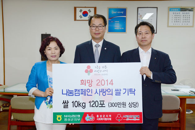 농협중앙회 홍성군지부(지부장 조소행)는 지난 2일 지역의 어려운 이웃에게 전달해달라며 쌀 1200kg(300만원 상당)을 홍성군에 기탁했다. <사진> 홍성군과 홍성군지역사회복지협의체는 이날 기탁 받은 쌀을 긴급지원 생계비 지원 대상자 및 복지의 손길이 닿지 않는 사각 지대에 놓인 어려운 이웃들에게 배부할 계획이다. 농협중앙회 홍성군지부는 지난해 김장김치 20박스를 지역아동센터에 지원하고 올해 이웃사랑 성금모금을 통해 홍성군지역사회복지협의체에 500만원을 기부하는 등 해마다 다양한 이웃사랑 활동을 실천해 오고 있다.