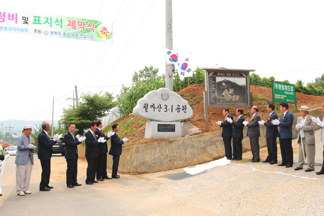 국권회복과 민족자존의 기치를 드높였던 금마면 3·1독립만세운동의 정신을 기리고 계승하기 위한 기념사업이 첫발을 내딛었다. 철마산3·1공원관리위원회는 지난 21일 철마산 3·1공원에서 ‘철마산 3·1공원 표지석 제막식’을 가졌다. 이날 제막식에는 김석환 군수, 홍문표 국회의원, 금마면 기관단체장, 유족, 보훈단체 회원 등 250여명이 참석했다. 이병주 철마산 3·1공원 관리위원회 위원장은 “호국보훈의 달을 맞아 호국정신을 드높이기 위해 공원을 정비하고 제막식을 갖게 돼 뜻깊다”며 “앞으로 이곳에 추모객과 관광객이 찾을 것으로 기대하고, 군민들의 휴식공원으로 이용됐으면 한다”고 말했다.