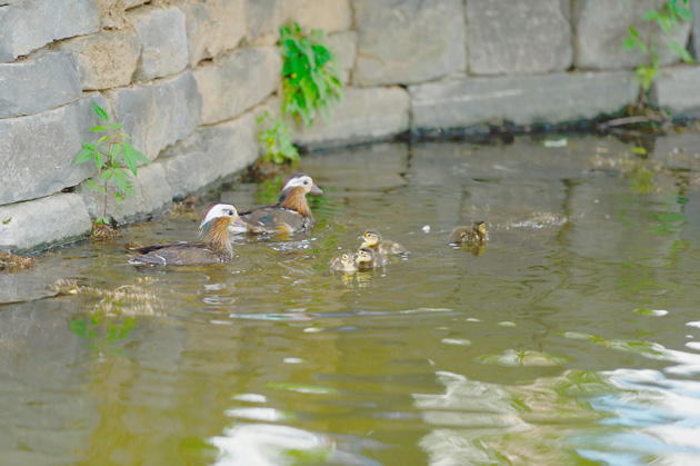 수려한 풍광으로 지역민들은 물론 관광객들의 방문이 잦은 홍주성 내 홍성군청에 새로운 명물이 생겼다. 지난해 군청 앞 느티나무에 자리 잡은 원앙 한 쌍이 올해는 새끼를 낳아 여하정 연못에 터를 잡은 것. 얼마 전 군청 느티나무에서 태어난 원앙새끼 10마리와 어미 한 마리가 군청 뒤 여하정에서 자리 잡으면서, 군청 직원들과 군청 방문객들의 눈길을 끌고 있다.
