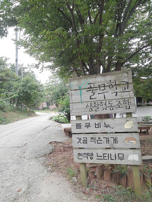풀무농업학교. 1958년에 처음 학교를 세운 이찬갑, 주옥로 설립자는 무교회주의를 실천하면서, 이 땅에 새로운 교육의 씨앗을 퍼트리고자 홍동 어느 보리밭에 작은 학교를 세웠다고 한다. ‘더불어 사는 평민을 기르자’는 학교 이념을 바탕으로 지금까지 50여년 동안 굳건히 홍성군 홍동면에 뿌리를 내리고 있다. 풀무농업기술고등학교가 다른 대안학교들과 달리 훌륭하게 여겨졌던 부분은 지역사회와의 관계맺기다. 전공부를 비롯해 갓골생태농업연구소, 교육농연구소, 지역센터마을활력소, 밝맑도서관, 헌책방, 목공소 등 마을공동체의 전형을 담고 있다.