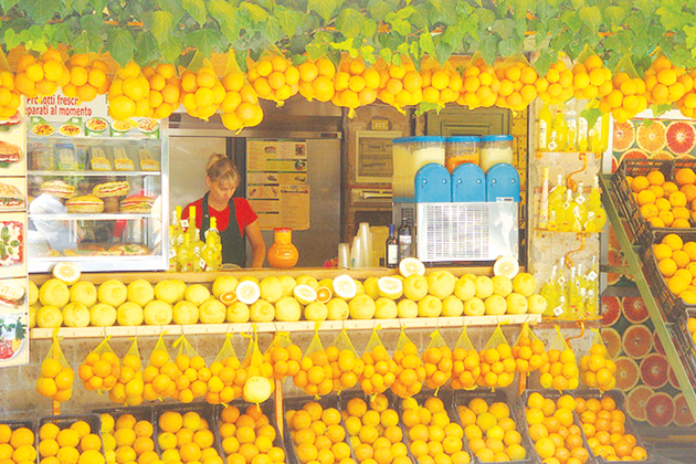상단은 이슬람 양식으로, 하단은 로마네스크 양식으로 지어졌기 때문이다. 망루처럼 높은 계단 위에 앉아 리모네 젤라또(레몬맛 아이스크림)를 먹으며 천년 전 아말피 공화국의 부귀영화를 되짚어보는 일은 이제 이 마을 관광의 핵심코스가 됐다. 기도하듯 계단을 올라 화려한 종교품들로 가득한 대성당 내부와 이웃한 수도원 건물까지 알찬 구경을 마쳤다면 골목마다 자리한 알록달록한 가게들을 순례해보자. 아말피 특산물인 레몬으로 만든 아기자기한 레몬주를 파는 가게와 레스토랑, 아이스크림집, 명품 가게들이 곳곳에 숨어 있다. 아말피에선 아이스크림도 꼭 맛봐야 하지만 레몬주도 한 잔 정도 마셔보는 게 좋다.