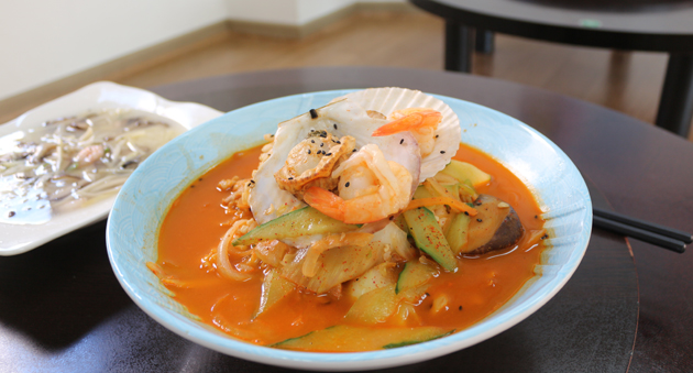 계절에 따라 여름에는 가리비가, 겨울에는 자연산 홍합이 짬뽕에 들어간다. 또 대하, 오징어, 쭈꾸미, 복어, 키조개 관자 등 해산물이 듬뿍 들어있어 입 안 가득 바다향기를 느낄 수 있다. 표고버섯과 새송이 버섯도 큼지막하게 썰려 올라가있어 씹는 맛을 더한다. 국물은 조미료보다는 사골과 바지락으로 고아낸 육수로 맛을 내 자극적이지 않고 깊은 맛을 느낄 수 있다. ‘파워수타’의 정점인 용수면은 코스요리를 주문해야 맛 볼 수 있다. 용수면은 기름진 요리를 먹은 후 깔끔한 마무리를 위해 후식으로 손님상에 오른다.