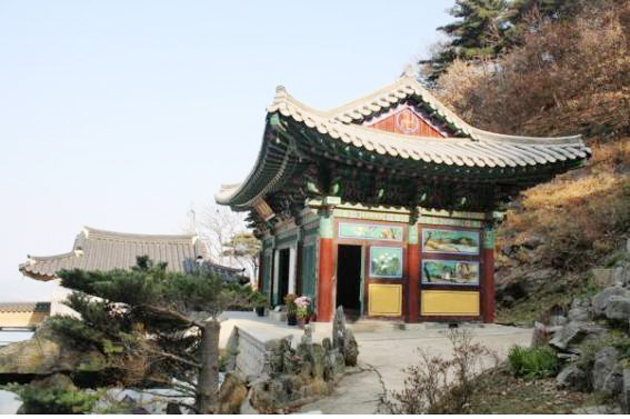 이 종각 밑으로 해서 경내에 들다보면 옹달샘 위에 놓여 있는 갖가지 동자상과 불상들이 먼저 맞는다. 부처님의 사리탑이 경내 중앙에 자리 잡고 있다. 사리탑을 뒤로 하고 산 아래를 굽어보니 광천시내가 한 눈에 들어온다. 문득 <사리탑 공덕비>에 새겨진 글을 눈여겨본다.