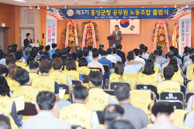 홍성군청 공무원노동조합(위원장 이순광)이 지난 15일 군청 대강당에서 조합원 300여명이 참석한 가운데 제3기 출범식을 개최했다. 출범식에는 조진호 공무원노동조합총연맹 위원장 등 전국단위 노조위원장 30명과 김석환 홍성군수, 이상근 군의회 의장 등이 참석했다.