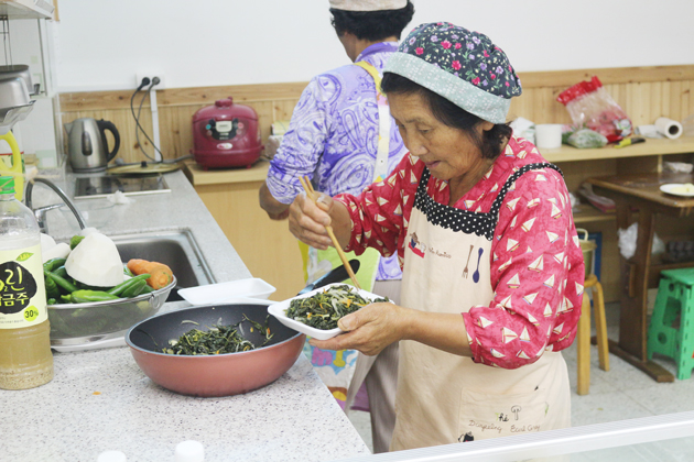 홍동 로컬푸드 매장에 들어서자 한켠에서 고소한 냄새가 풍겨온다. 냄새를 따라가 보니 나물을 볶아 그릇에 담아내고 있는 할머니의 모습이 나타났다. 조리를 할 수 있는 공간과 개별 포장된 반찬을 진열해놓는 쇼케이스가 갖추어진 공간에서 할머니 두 분이 분주히 움직이고 있다. 이곳에선 6명의 할머니들이 두 명씩 조를 짜 일주일에 이틀씩 월요일부터 토요일까지 자리를 지킨다. 바로 할머니장터조합(준·이하 할머니조합)의 조합원 할머니들이다. 할머니 조합의 조합원은 총 18명으로 6명의 할머니가 실무자로 활동하고 있다. 할머니들은 매장에서 직접 김밥을 싸고, 김치를 담그고, 반찬을 만들어 판매한다.