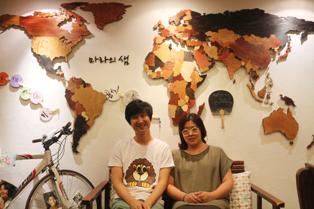 동물병원 두 곳이 붙어 있는 사이에 지하로 내려가는 문이 있다. ‘마라의 샘’이라 이름 붙여진 이 공간에 커피 볶는 향이 나기 시작한 것은 지난해 장원석(35)씨, 황선미(31)씨 부부가 오면서부터다. 부부가 오기 전까지 이 곳은 그의 매형인 수의사 강상규(39)씨가 운영하며 명사 초청강연, 작은 음악회, 라이브콘서트, 독립영화 상영, 독서모임, 작품전시회 등 다양한 공연과 문화행사를 열어왔다. 국제 어린이 양육기구인 컴패션을 알리고 싶어 하던 강 씨는 다양한 문화활동을 매개체로 사람들에게 컴패션을 알렸다. ‘마라의 샘’이 카페로 재탄생하게 된 이유는 더 많은 사람들이 이곳을 찾길 바라는 마음에서였다.