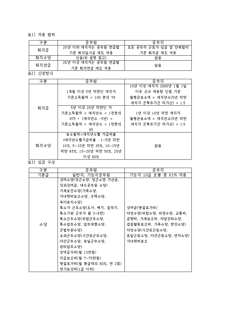 그리고, 20년 이상 재직 공무원은 퇴직연금을 받게 됩니다. 20년 기준으로 비교한 자체가 잘못되었으며, 특히, 퇴직금의 경우 기준도 다르고 정확하게 공무원의 퇴직금 지급방식이 어떻게 되고 있는지 나열을 하지 않고 특정 한 부분만 비교대상으로 하셨다는 점.