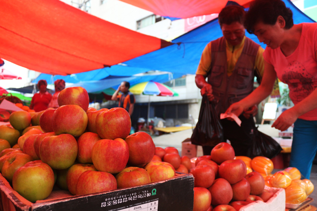 지난 6일 홍성전통시장에서 한 손님이 사과를 사며 웃음을 짓고 있다. 저작권자 © 홍주일보 무단전재 및 재배포 금지 김현선 기자 다른기사 보기 페이스북 카카오톡 URL복사 기사공유하기
