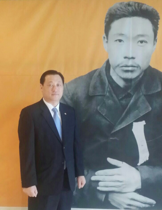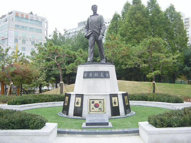 “안중근 장군은 우리 현대사의 가장 위대한 영웅” 안중근 의사 선양사업에 앞장서고 있는 안중근평화재단 이진학(56) 이사장은 힘주어 말한다. 결성초등학교 출신의 재중사업가인 이 이사장은 중국 하얼빈에 안중근 의사의 동상을 기습적으로 세운 인물이다. 그가 안중근 의사 선양사업에 관심을 갖게 된 계기는 2005년부터다. 당시 그는 하얼빈을 방문한 고건 총리를 만났다. 연설에서 고건총리는 하얼빈 시 정부 인사들에게 “‘안중근 의거’의 역사적 현장인 하얼빈에 안중근 의사의 동상을 세워 한국과 하얼빈의 각별한 인연과 안 의사의 정신을 널리 알렸으면 좋겠다”는 취지의 발언을 했다. 20년 전부터 중국에서 사업을 해온 이 이사장은 그 역할이 자신이 할 일이라 생각했다.