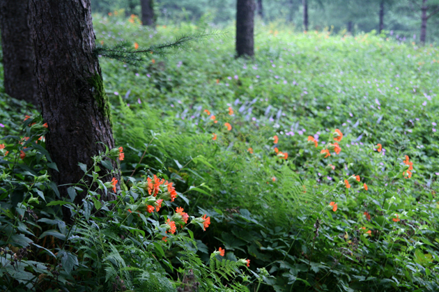 필자도 수년째 가능한 한 시간을 쪼개어서라도 들리는데 자동차로 1300m를 단숨에 올라서는 곳은 아마 이곳 뿐이리라! 한여름에도 서늘한 산바람이 불어대는 통에 25도를 넘지 않아서 가족피서지로 아주 제격이 아닌가 싶다. 사실 그보다는 차에서 내리자마자 펼쳐지는 야생화 꽃잔치는 벌어진 입을 다물지 못하기에 충분하다. 진분홍의 동자꽃. 누나의 치맛자락을 떠올리게 하는 둥근이질풀의 고운색감. 시원스런 꽃대에서 나오는 신비한 터리풀과 습지의 한구석을 온통 메운 노루오줌.