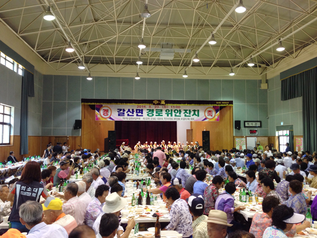 갈산면새마을부녀회(회장 전양숙)는 지난 23일 갈산중·고등학교 백야관에서 어르신 600여명을 초청해 경로위안잔치를 개최했다. 갈산면, 갈산농협, 갈산이장협의회, 갈산주민자치위원회, 갈산체육진흥회, 갈산새마을지도자회, 갈산청년회 등이 후원하고 갈산면새마을부녀회가 주최한 경로잔치는 면민화합과 경로효친사상을 고취하기 위해 열렸다.
