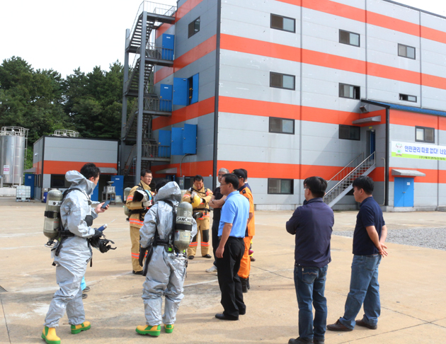 사고가 발생한 공장은 의약품 중간체 및 전자재료를 제조하는 곳으로 지난 2012년 광천농공단지에 입주했으며 현재 20여명의 근로자가 일하고 있다. F공장은 지난 4월30일 실시된 안전점검에서 한 차례 시정보완명령을 받았다. 올 초 발생한 경기 남양주 빙그레 공장 암모니아 누출사고가 발생하자 소방서와 군 환경과는 ‘독성화학물질 누출사고에 따른 합동소방안전점검’을 실시한 것이다.