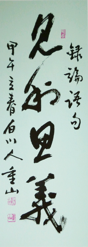 “안중근 의사와 김구 선생과 같은 분들이 쓰신 글을 보면 글 자체가 갖는 조형미나 예술성은 높다고 하기 어렵겠지요. 하지만 그분들의 글 속에서 고고한 인품과 기상을 느낄 수 있기에 그 어떤 글보다 가치 있게 평하는 것입니다. 반면 이완용의 글은 매우 아름답고 명필이라 부를 수 있지만 찾는 이들이 없습니다. 그렇기에 서예가는 글을 쓰는 기술과 예술성만 갈고 닦아서는 안 되고 사람 됨됨이를 갖춰야 합니다”