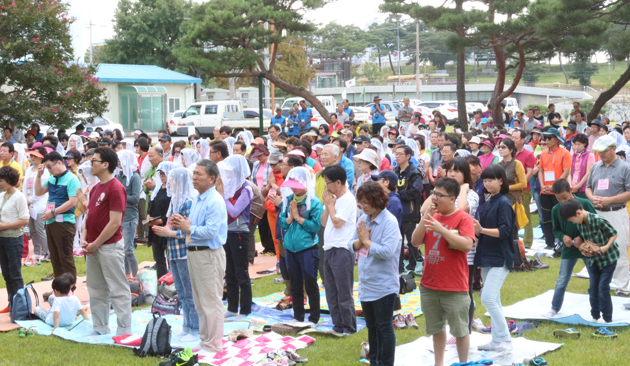 <사진> 미사를 집전한 홍성성당 성지신부 최교성 신부는 “홍주의 순교자 212위 중 4위의 복자가 탄생했다”며 “홍성은 100명이 넘는 순교자가 나온 곳으로 충청도에서는 유일하다”고 홍주 성지의 의미에 대해 설명했다. 화정4동성당 신도들은 열차로 홍성에 도착해 군청 여하정까지 도보로 이동했다.