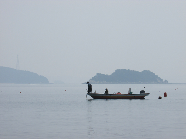 가로림만 입구 만대항 주변의 낚싯배.