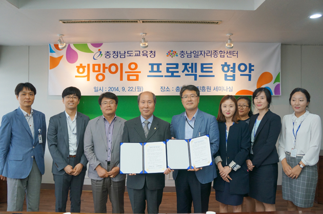 충남경제진흥원(원장 고경호)에서 운영하는 충남일자리종합센터는 지난 22일 재단 세미나실에서 희망이음 프로젝트에 대한 업무 협약을 충청남도 교육청(교육감 김지철) 미래인재과와 체결했다. 저작권자 © 홍주일보 무단전재 및 재배포 금지 서용덕 기자 다른기사 보기 페이스북 카카오톡 URL복사 기사공유하기