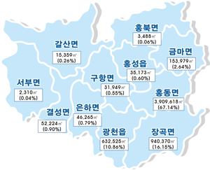 홍동면 등 582만3260㎡ 규모 2018년까지 525억 투입