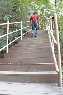 하지만 등산객들의 반응은 냉담했다. 끊임없이 이어진 계단은 산행을 지루하게 할뿐만 아니라 관절에도 상당한 무리가 가기 때문이다. 개선을 요구하는 등산객들의 불만이 지속되자 지난 14일 홍성군의회 의원들이 현장 확인에 나섰다.