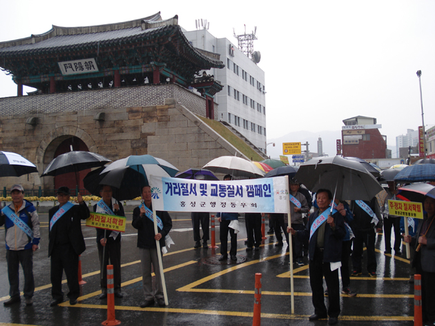 전직 공무원 출신들의 모임인 홍성 행정동우회는 지난달 31일에 ‘거리 및 교통질서 캠페인’을 전개했다. 이날 캠페인은 비가 오는 궂은 날씨에도 불구하고 조양문에서 농협군지부 사거리까지 90여명 회원들이 유인물 배포 및 캠페인을 실시했다.