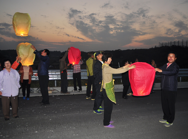 희망마을 만들기 사업을 추진 중인 홍동면 반교마을이 지난달 29일 마을 만들기 사업을 통해 축적해 온 그간의 성과를 주민들이 함께 나누는 ‘제1회 반가운 교류장터’ 마을축제를 개최했다. 축제에서는 풍등날리기를 통해 풍년농사와 홍동면 33개 고을의 안녕을 빌기도 했다. 저작권자 © 홍주일보 무단전재 및 재배포 금지 서용덕 기자 다른기사 보기 페이스북 카카오톡 URL복사 기사공유하기