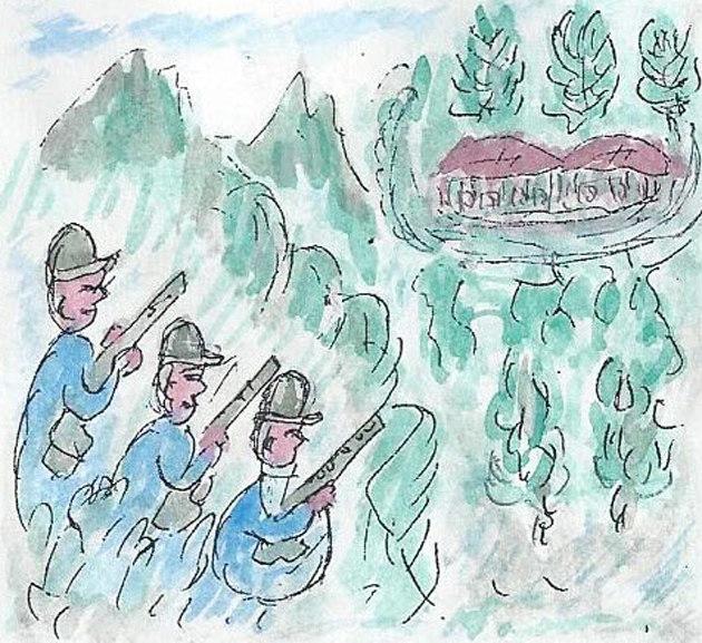 피란의 발길은 바쁘기만 하다. 입으로 전하는 소식은 어느 지역이 적군의 손에 들어갔다느니, 두고 온 집을 적기가 폭격했다는 갖가지 유언비어 같은 억측이 전해질수록 발길은 마음을 재촉한다. 이게 원일인가. 아닌 밤중에 홍두깨 식으로 그만 비가 내렸다. 일행들은 피난길답지 않게 여기저기에서 수군수군 거리는 틈을 탄 시인의 정은 왜놈들의 못된 짓을 질타라도 할 요량이다. 시인은 왜놈들이 이 천지를 뒤집어서 모두 훔쳐 가려고 하거니, 천애의 먼 땅과 비바람도 또한 정이 가누나 라고 읊었던 시 한 수를 번안해 본다.