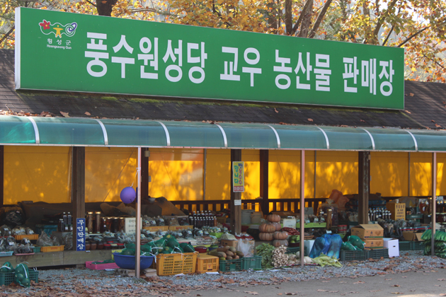 풍수원성당 교우 농특산품 판매장. 무인판매장이 눈길을 끈다.
