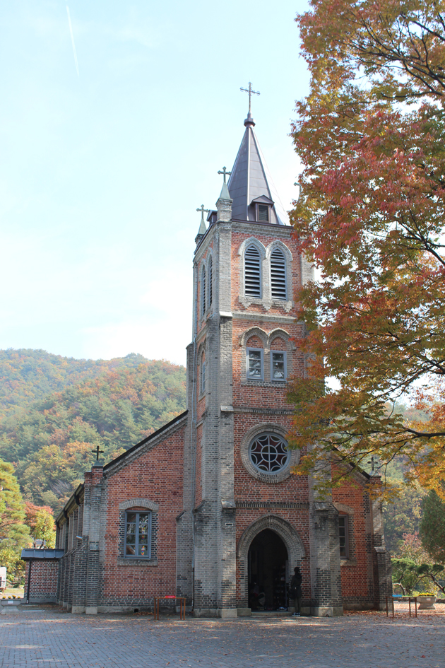 어쩌면 그런 느낌은 이 성당의 탄생 내력과 무관치 않을지도 모른다. 우리나라 최초의 신앙촌이자 한국인 신부가 건립한 최초의 성당이기도 한 풍수원 성당. 1801년 신유박해 이후 용인을 근거로 한 40여 명의 천주교 신자들이 8일 동안 피난처를 찾아 헤매다 가까스로 정착한 곳이 지금의 풍수원이었고, 그때부터 풍수원 일대는 신앙공동체 생활의 터전이 되었다.