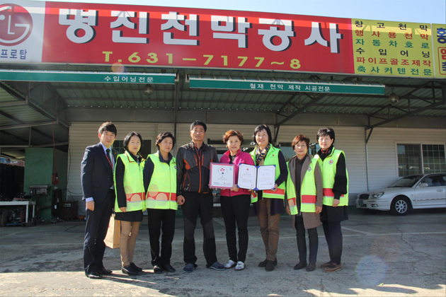 구항면에 위치한 명진천막공사(대표 한광재)가 지난 15일 충남사회복지공동모금회(회장 이관형)가 진행하는 착한가게에 가입했다. 저작권자 © 홍주일보 무단전재 및 재배포 금지 서용덕 기자 다른기사 보기 페이스북 카카오톡 URL복사 기사공유하기