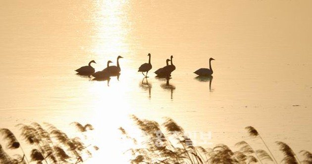 모든 신사는 모든 숙녀에게 정중하게 춤을 청해야한다는 것을… 아름다운 자연의 친구인 백조를 만나는 간월호는 서산·홍성 일대의 천수만 일부를 막는 간월 부남지구 간척사업으로 인해 조성된 거대한 인공호수다. 약 7.7km의 긴 방조제를 사이에 두고 오른쪽이 담수호가 된 간월호, 왼쪽이 바다인 천수만이다.