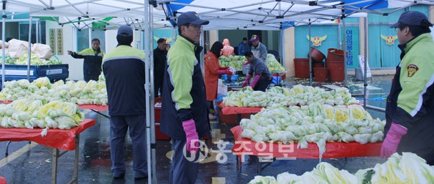 홍성읍의용소방대(대장 장영진)는 지난 30일 홍성읍 소재 홍성읍의용소방대 청사 광장에서 홍성읍남성의용소방대원과 소방공무원과 청로회 회원들 50여명이 참여한 가운데 사랑의 김장 담그기 행사를 진행했다.