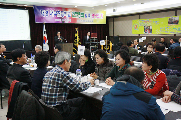 2014년 재경 서부초등학교 동문회 연말총회 및 송년회가 지난 9일 용산 아이컨벤션웨딩홀에서 한구 서부초 교장과 한선희 서부면장 등 내·외빈 및 동문 250여명이 모인 가운데 열렸다.