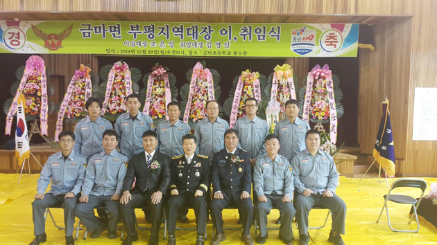 홍성소방서는 지난달 29일 금마초등학교 봉수관에서 손정호 서장을 비롯한 기관단체장, 각 읍면 의용소방대장 등 100여명이 참석한 가운데 금마면남성의용소방대 부평지역대장 이ㆍ취임식을 가졌다.