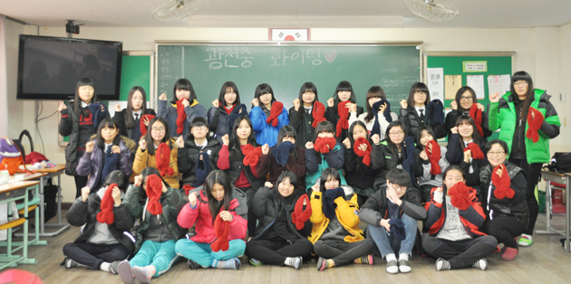 광천중학교(교장 김종철) 3학년 2반 29명의 여학생들이 고입시험을 마치고 의미 있는 일을 하고자 담임교사의 지도하에 ‘사랑 나눔 실천’을 위해 뜻을 같이했다. 장혜경 교사는 “뜨개질을 안 해 본 학생들은 배워가며 만들었다”며 “좋은 일을 한다고 열심히 배우는 모습이 참 기특했다”고 전했다.