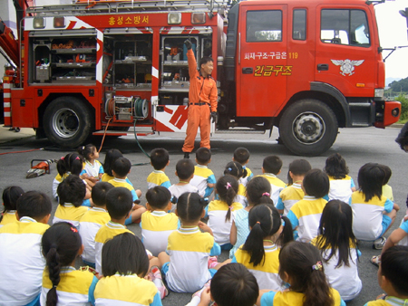 홍성소방서(서장 김대환)는 지난달 31일 소방서 차고 앞 광장에서 관내 새싹어린이집 원아 40여명을 대상으로 다채로운 소방체험교육을 실시했다.