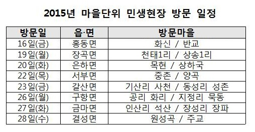28일까지 11개 읍면 22개 마을 방문 민생점검