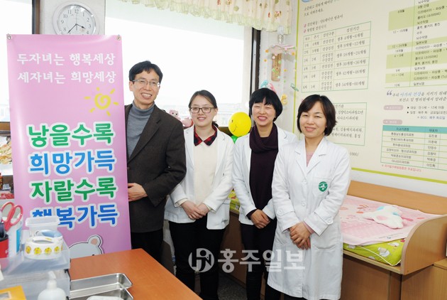 도·농을 불문하고 인구가 감소하고 있는 이 시대 출산 장려를 위해 머리를 맞고 있는 군보건소 가족보건분야(이하 가족분야)를 찾았다. 직원 6명으로 구성된 가족분야는 출산친화적 군 조성을 위해 산전검사는 물론 임산부 태교 운동, 산후 관리 등 양질의 서비스를 위해 고심하고 있었다.