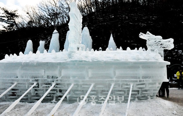 마을에 들어서면 개울과 수영장에 설치된 얼음 분수가 보이기 시작하는데 약 50점이라고 한다. 입장권을 가지고 있으면 즐길 수 있는데 각종 눈으로 만든 조각, 얼음으로 만든 조각, 얼음동굴, 소원터널 등 눈과 얼음으로 만든 세상 속으로 빨려 들어가는데 부족함이 없다. 겨울왕국에 나오는 엘샤공주와 안나공주 눈 조각품이 가장 인기가 있어 특히 여자아이들은 이곳을 떠날 줄 모른다. 많은 관광객들은 얼음조각이나 눈으로 만든 작품을 배경으로 사진을 담기에 바쁘다.