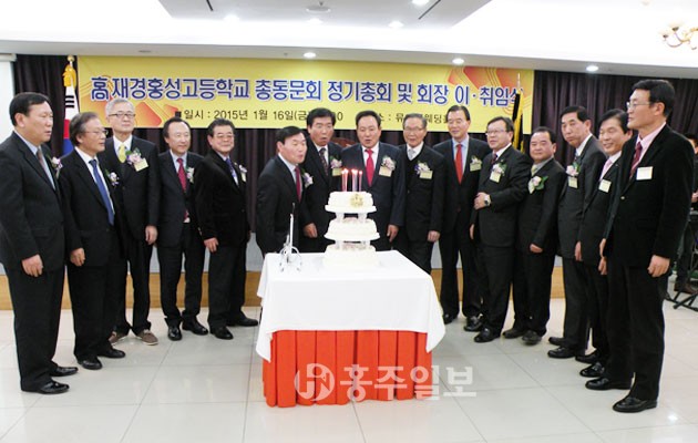 재경홍성고등학교총동문회(회장 복봉규)는 2015년 정기총회 겸 신년교례회, 회장 이취임식을 지난 16일 서울 용산구 소재 전쟁기념관 뮤지엄홀에서 300여명의 동문이 참석한 가운데 열렸다.