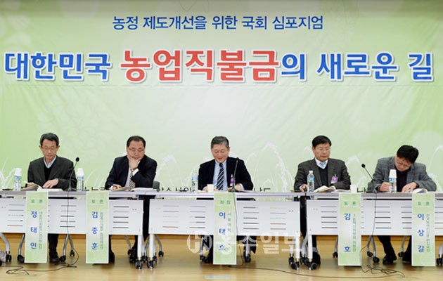 이태호 서울대 교수가 좌장을 맡아 진행한 종합토론은 김종훈 농림축산식품부 농업정책국장, 한국농촌경제연구원 김태곤 박사, 김태연 단국대 교수, 김호 3농혁신위원회 위원장 등이 △농가 소득정책과 농업직불금 제도 개선 방향 및 의지 △환경 및 경관보전 정책과 농업직불금 제도 방향 △지역입장에서 농촌개발 정책과 농업직불금 개선 방안 등을 주제로 각각 발표했다.