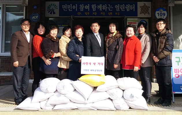 구항면새마을부녀회에서는 지난 2일 사랑의 쌀 모으기 사업을 통해 모아진 쌀을 어려운 이웃들에게 전달해 이웃사랑을 실천했다. 구항면새마을부녀회의 쌀 모으기 행사는 2000년도부터 매년 실시해오고 있으며 작년에 추수한 쌀을 정성스럽게 모아서 독거노인 46가구에 쌀 20㎏씩을 전달해 달라고 구항면사무소에 기탁했다.