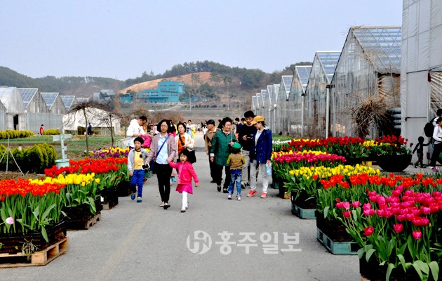 홍성 - 조양로 - 예산방면 - 충서로 - 윤봉길로 - 석양교차로 - 금산교차로에서 도고방향 죄회전 - 아산만로 - 봉농리, 세계꽃식물원 방면으로 좌회전 - 300여 미터 - 세계꽃식물원 (40분 소요)