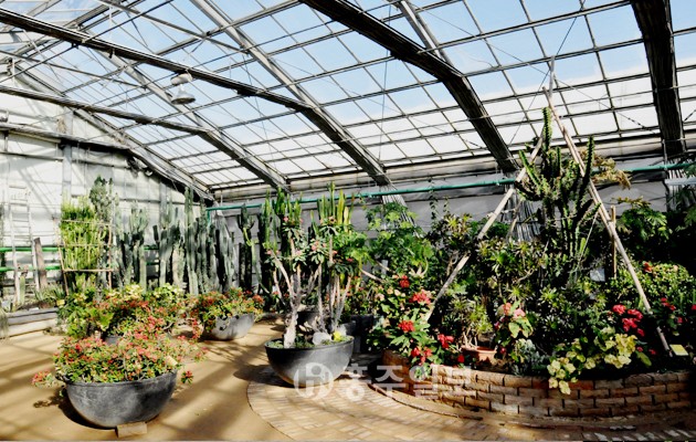 5000여 평의 유리온실 안에 세계적으로 유명한 약 1000만 송이의 꽃들이 향기를 폴폴 풍겨 코까지 즐거워진다. 상큼한 흙냄새와 풀냄새가 어우러진 이곳에는 어릴 적 시골길에서 보았던 이슬 맺힌 나팔꽃을 만날 수도 있다. 또한 우리와 친숙한 목화가 나무로 자라나 꽃을 피우기도 한다. 빨갛게 피어난 사루비아 여기저기 피어나는 시계초를 보면 신비롭게 느껴지고, 하얗게 혹은 붉은 빛으로 피어나는 호주매화, 노란색 그리고 붉은 색으로 피어나는 거베라, 멋스럽고 귀티를 더하는 극락조화, 란타나 등의 각종 허브식물도 있는데 참 향기가 좋다. 붉은 새우풀과 붉은 여우 꼬리풀 그리고 솔모양을 하고 있는 병솔나무는 붉은 색을 머금고 피어나는 참 아름다운 색감을 자랑한다.