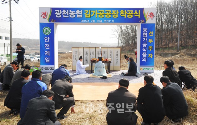 광천농협(조합장 이철진)은 지난 23일 김가공공장 착공식을 갖고 올 7월 말 준공을 위한 공사에 들어갔다.<사진> 이날 착공식에는 이철진 조합장을 비롯한 농협 임직원 및 공사관계자 등 50여명이 참석한 가운데 진행됐다. 김가공공장 신축은 시설현대화로 인한 농협가공제품의 원가절감과 더불어 경쟁력을 갖추기 위해 계획됐다.