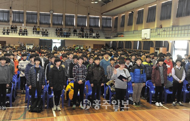 홍성고등학교(교장 정호영, 이하 홍성고) 2015학년도 입학식이 지난 2일 홍성고 웅비관에서 열렸다. 입학식에는 신입생 244명과 학부형, 교장을 비롯한 교직원, 김석환 군수, 이상근 군의회 의장 등이 참석했다. <사진> 입학식은 학사보고를 시작으로 신입생 선서, 장학증서 수여, 교직원 및 담임 소개 순으로 이어졌다.