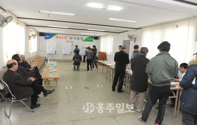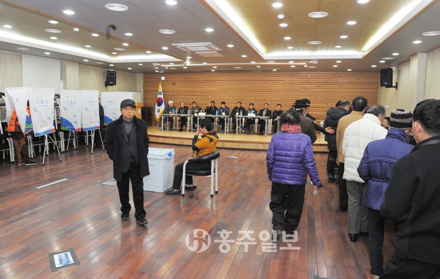 가장 많은 유권자가 거주하고 있는 홍성읍 홍주문화회관 투표소에는 오전부터 각 조합 유권자들이 몰렸지만 차분한 분위기 속에서 투표가 이뤄졌다. 오전 9시 30분경 홍주문화회관 투표소에서는 투표를 위해 조합원들이 20~30m의 줄을 서며 기다리는 모습을 보였다. 고령의 유권자들은 안내직원들의 도움을 받기도 했으며, 유권자들은 본인 확인 절차를 마친 뒤 소중한 한 표를 행사했다.