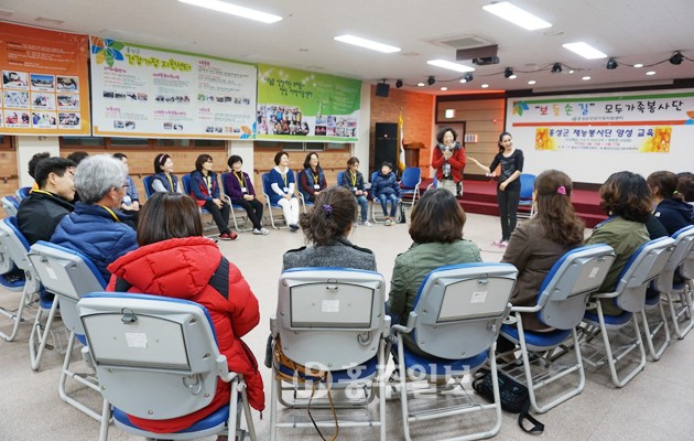 군 건강가정지원센터(센터장 김인숙)에서 운영하는 ‘보듬손길’ 모두가족봉사단은 전문 가족봉사활동 실천을 위해 지난 19일 센터 강당에서 교육을 진행했다. 이날 교육은 군 자원봉사센터와 연계해 모두가족봉사단과 일반 봉사자 30명을 대상으로 노인건강체조교육 등이 진행됐다.