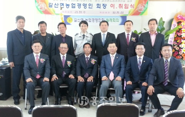 갈산면농업경영인연합회장에 최종섭 이동마을 이장이 취임했다. 갈산면농업경영인연합회는 지난 23일 갈산면농업경영인회회관에서 오배근 도의원, 김덕배 군의원, 이상구 조합장 등 관내 기관단체장 및 회원 등 100여명이 참석한 가운데 회장 이·취임식을 개최했다.